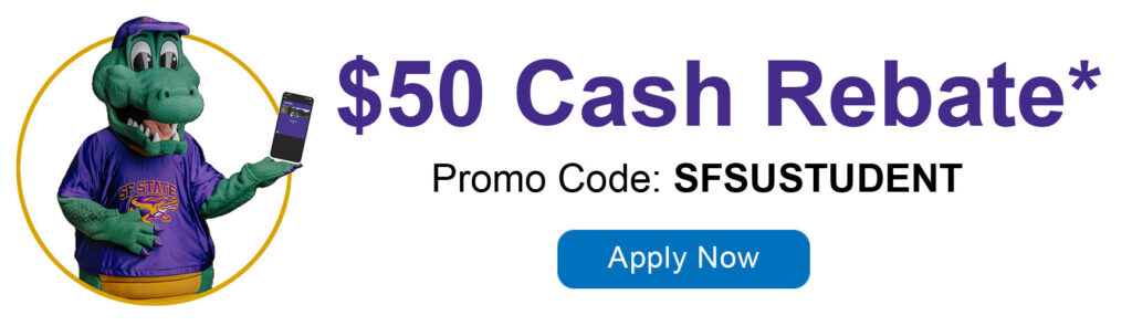 * The $50 cash rebate offer is available to new San Francisco State University student members who open a San Francisco Federal Credit Union membership with a Student OneCard account between 10/15/25 and 12/15/25. To qualify for the $50 cash rebate, you must open with SFFedCU a checking account with a debit card and make one transaction with the debit card within the first 30 days. Accounts opened on 12/15/25 will need to have the one transaction completed on or before 1/15/26. The $50 will be deposited into your OneCard account in the form of Gator Dollars once you meet the requirements. Previous student members who re-join the credit union will not qualify for this offer.